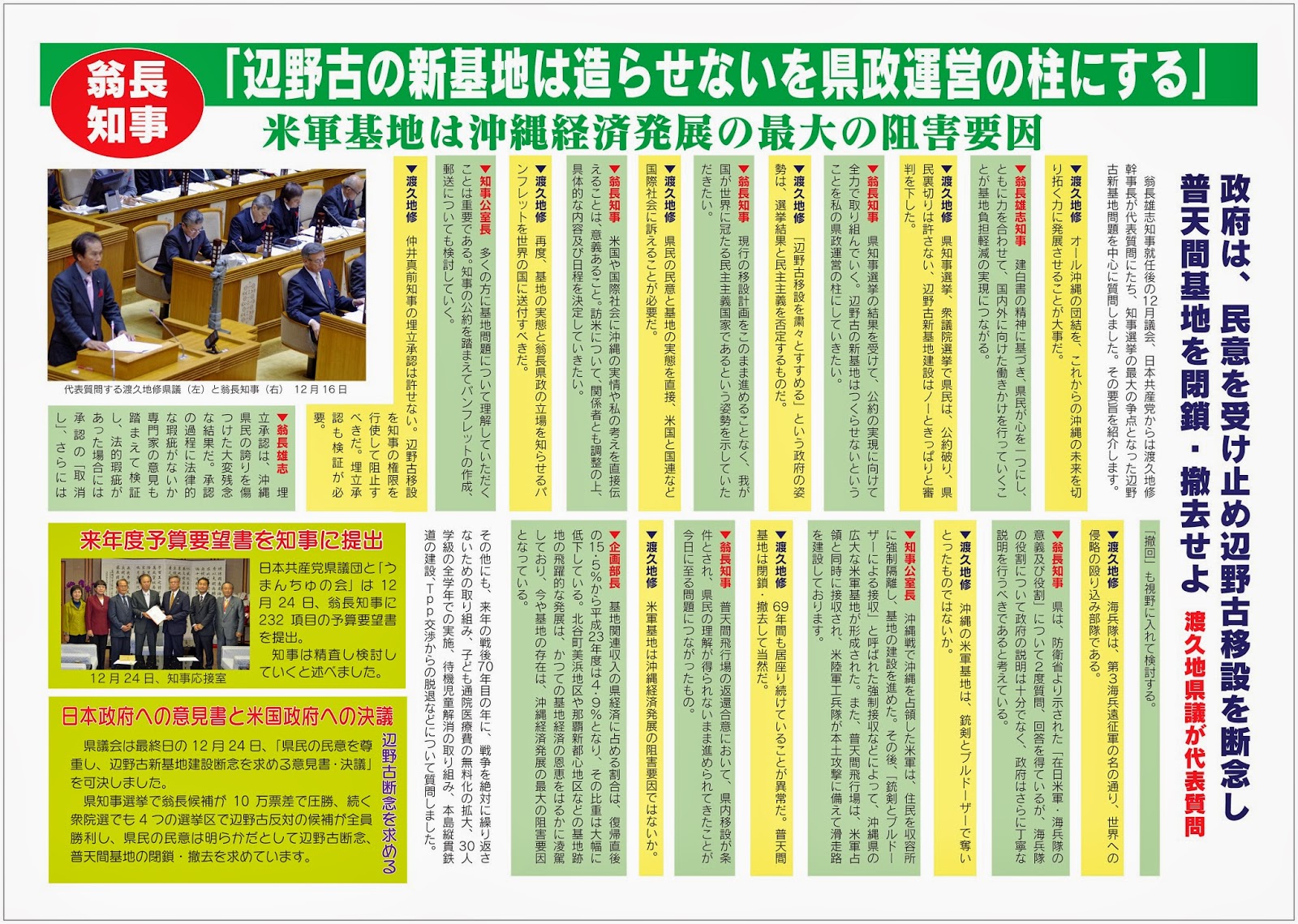 渡久地修県政報告だより、2009年月12議会報告