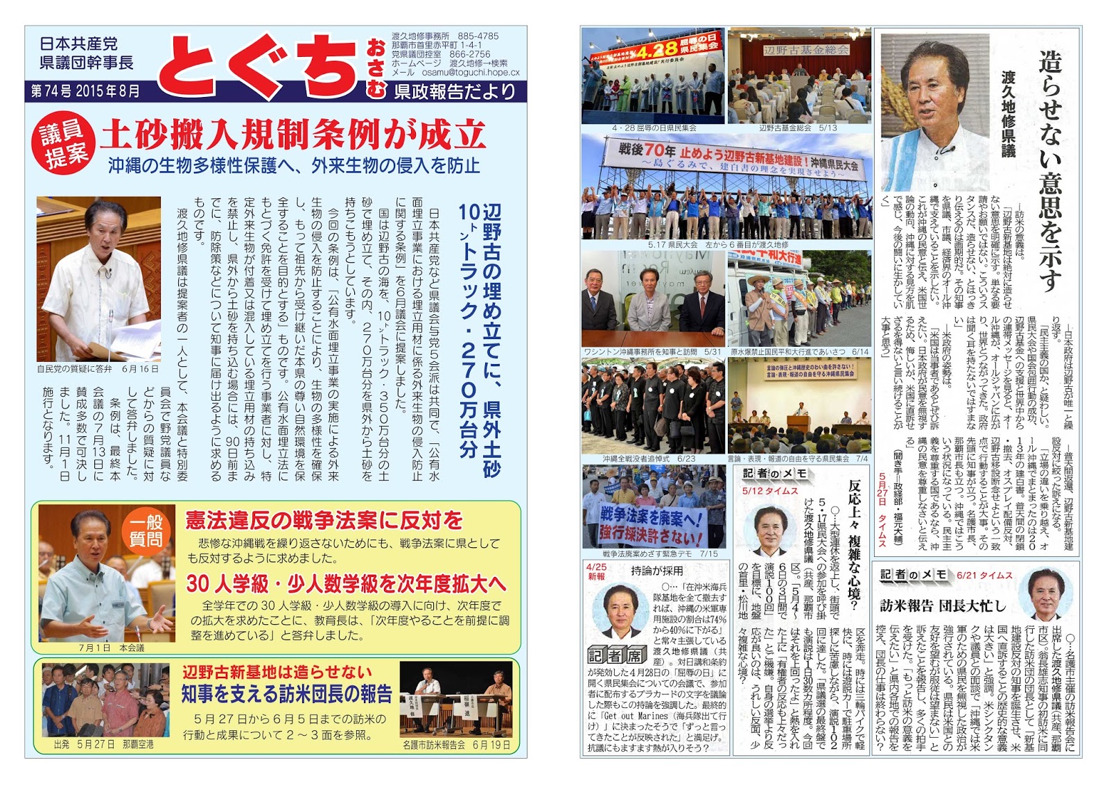 とぐち修県政報告だより、2015年6月議会報告