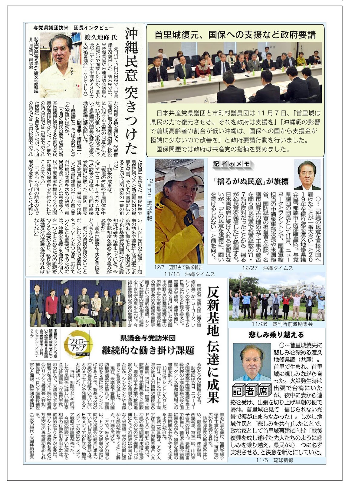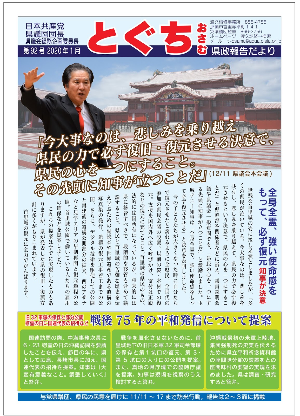 渡久地修県政報告だより、2011年月12議会報告