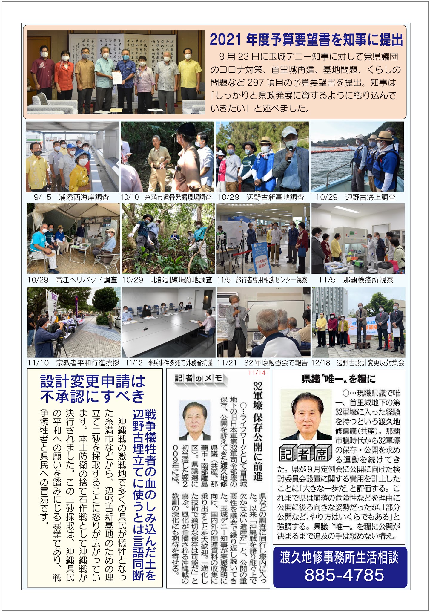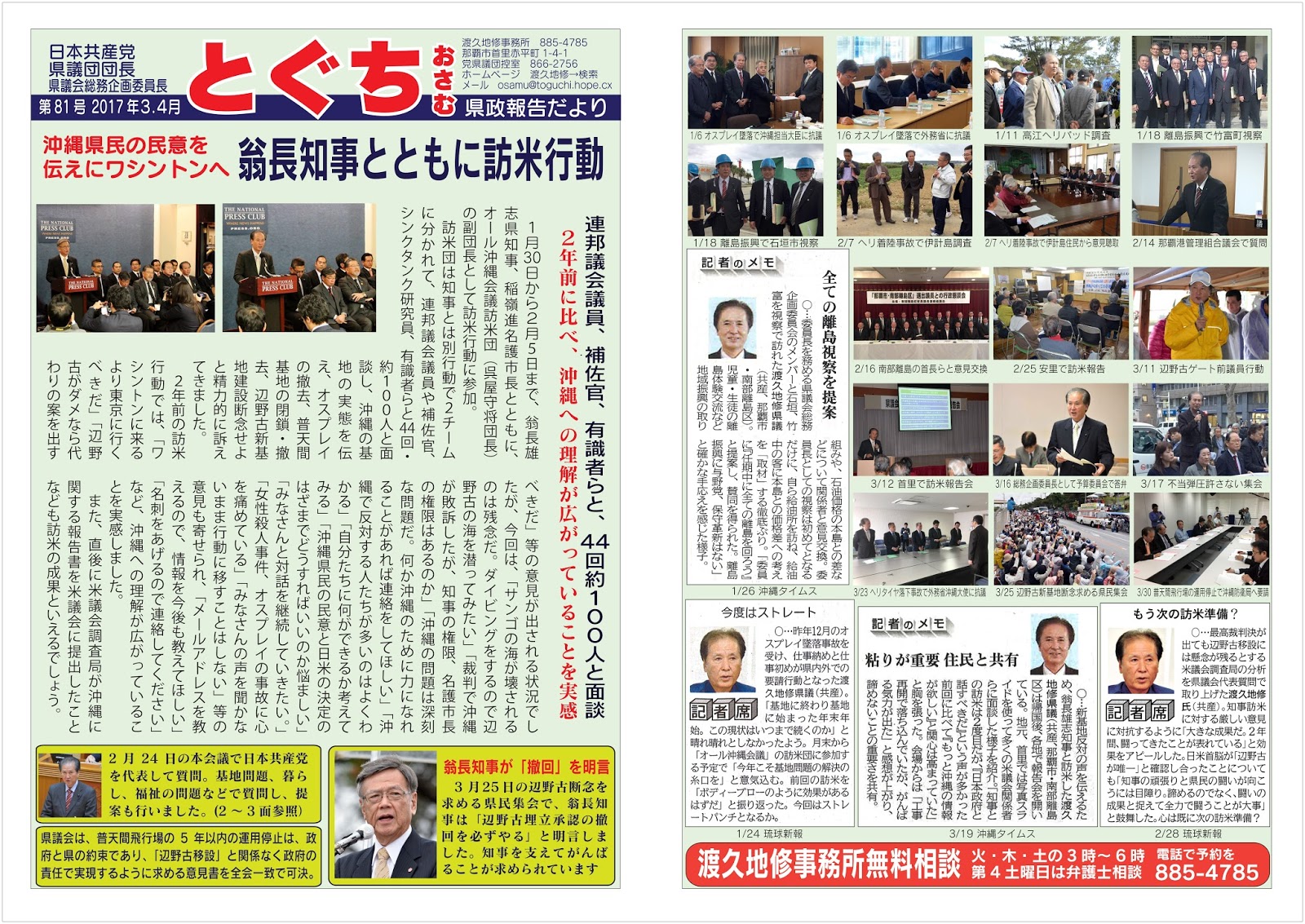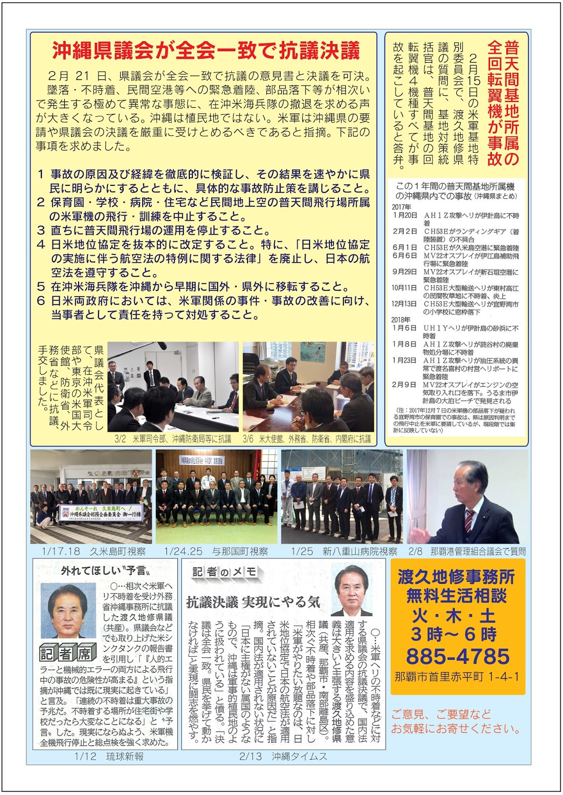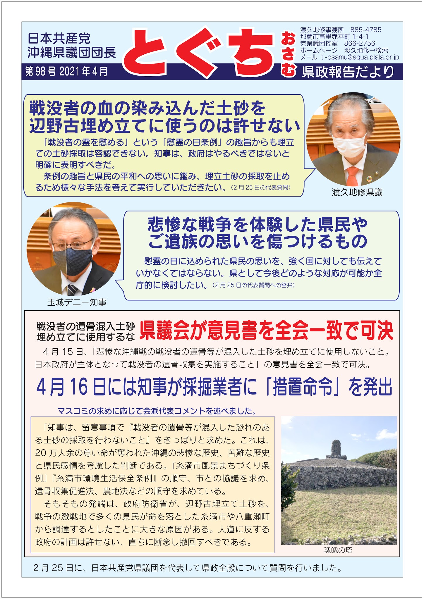 渡久地修県政報告だより、2011年月2議会報告