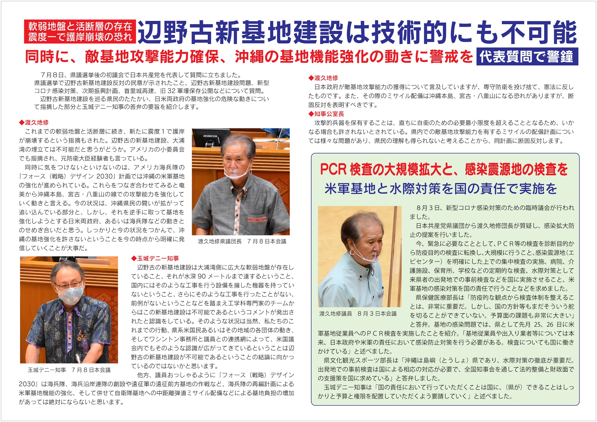 渡久地修県政報告だより、2008年9月議会報告