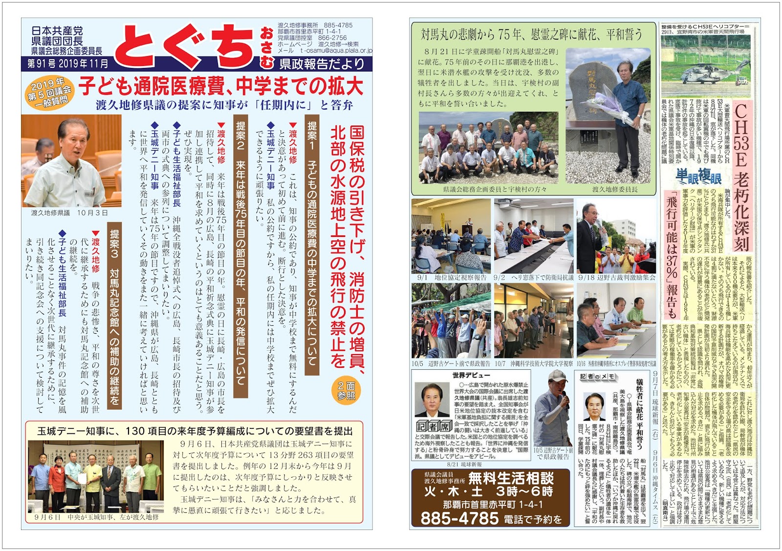 とぐち修県政報告だより、2019年9月議会報告