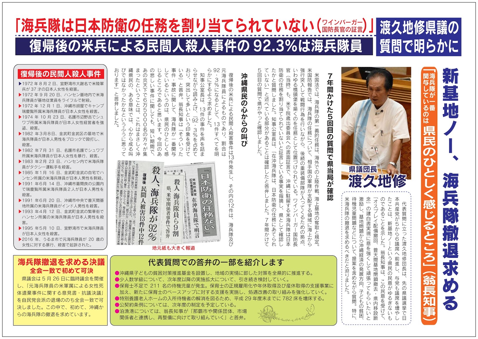 渡久地修県政報告だより、2012年月6議会報告