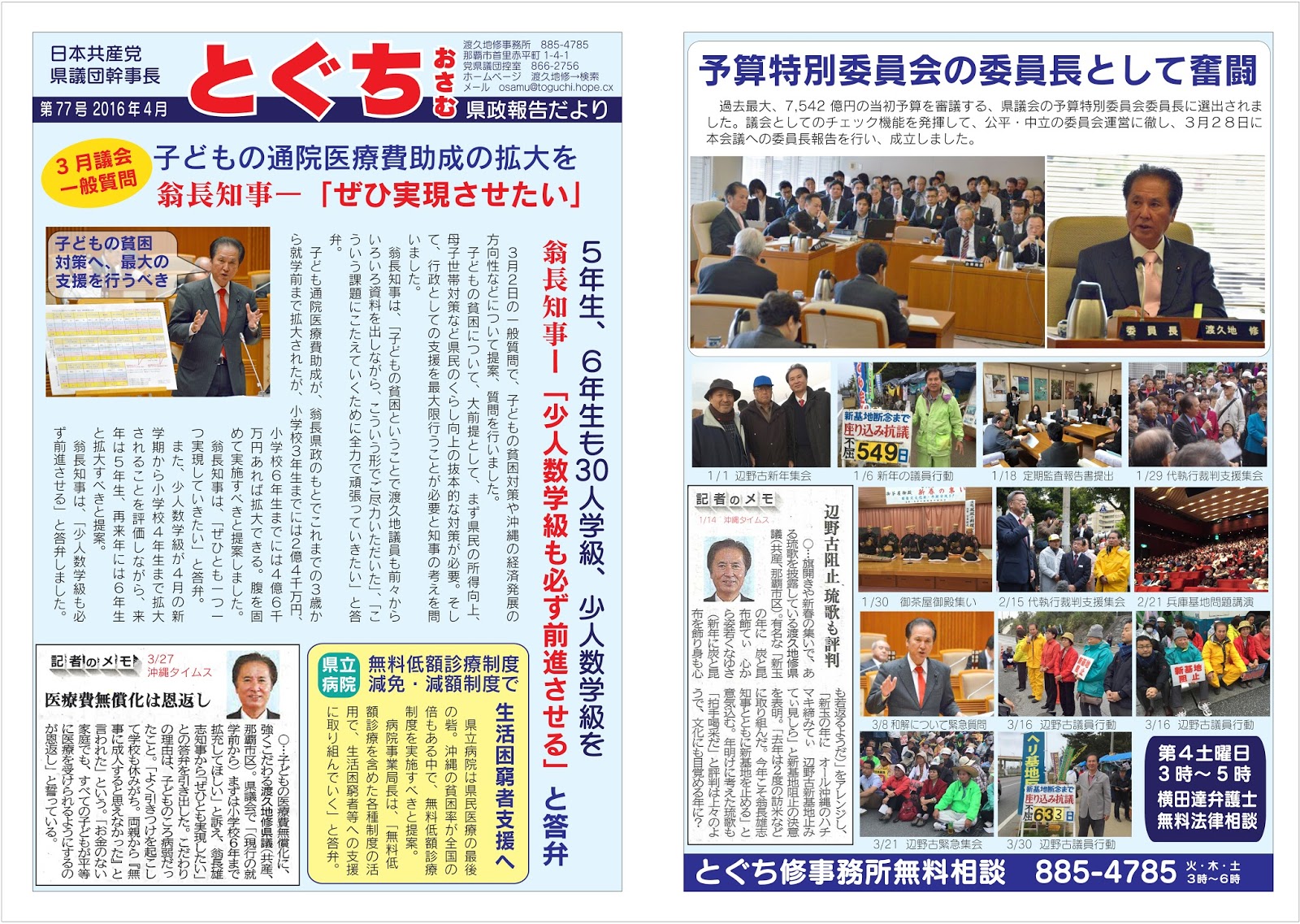 とぐち修県政報告だより、2016年6月議会報告