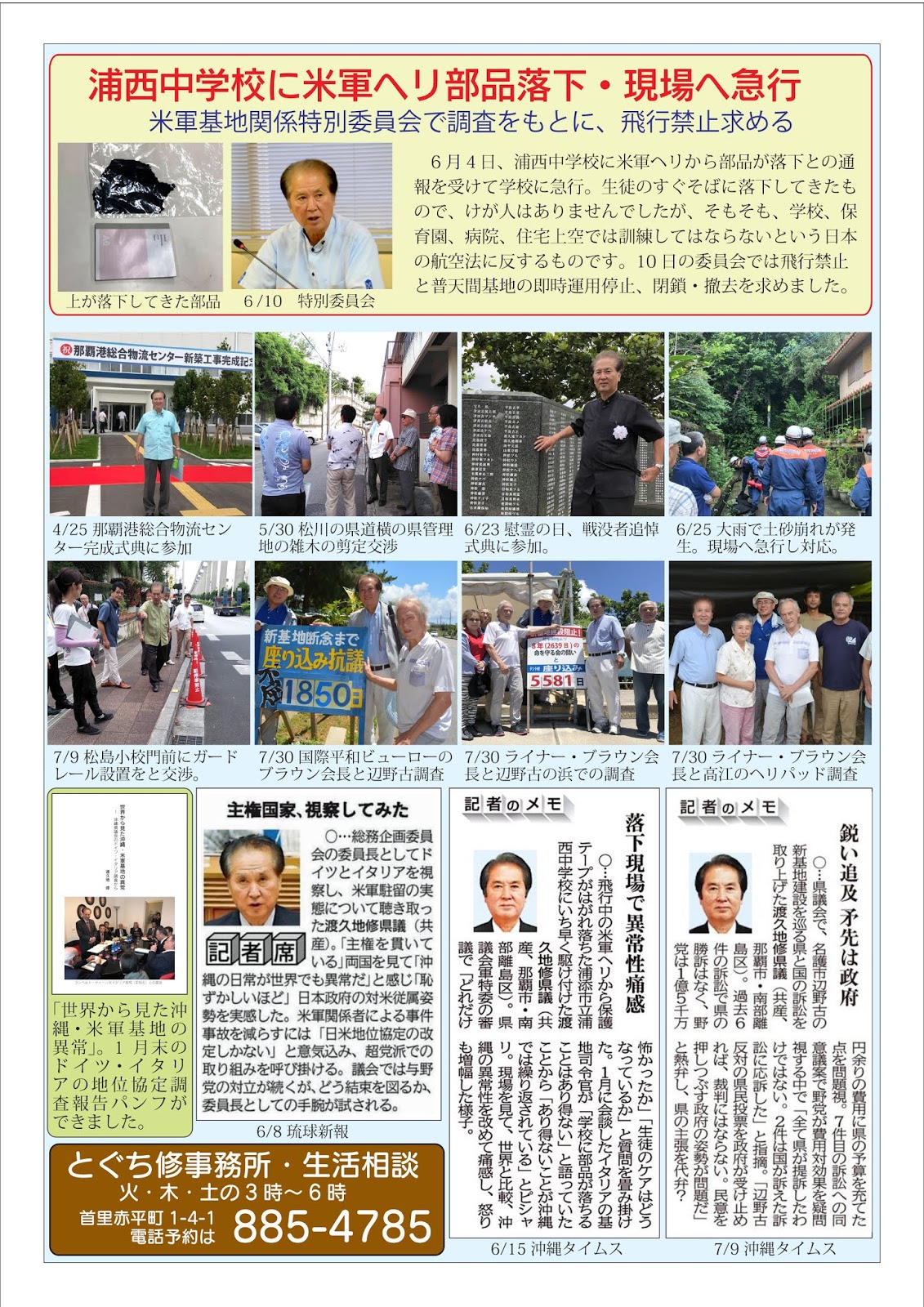 渡久地修県政報告だより、2011年月6議会報告