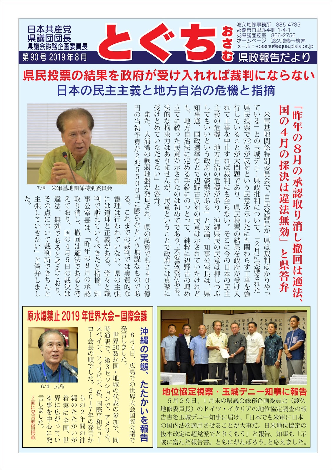 とぐち修県政報告だより、2019年6月議会報告